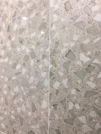 What stood out was the increased use of metallic in surprising ways, innovative tactile features (think texture and dimension), large-format decorative tile panels, and terrazzo.